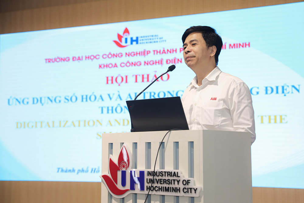 Ngày 14/11/2025, Khoa Công nghệ Điện - Đại học Công nghiệp TP.HCM (IUH) phối hợp cùng Công ty ABB Việt Nam tổ chức hội thảo với chủ đề “Ứng dụng số hóa và AI trong Hệ thống điện thông minh”.