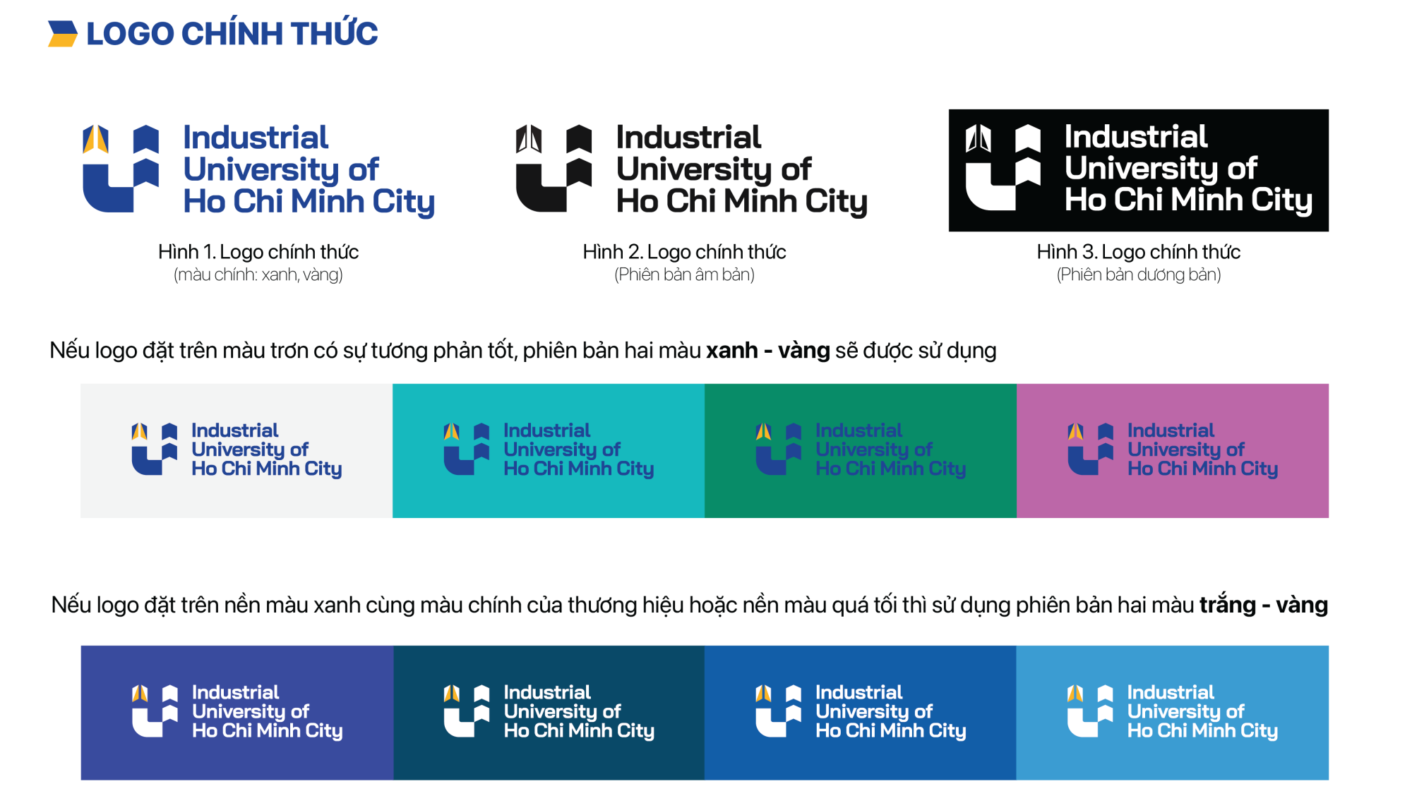 Bộ nhận diện thương hiệu mới của Trường Đại học Công nghiệp Thành phố Hồ Chí Minh (IUH) được thiết kế theo triết lý hiện đại – kế thừa – phát triển, phản ánh bản sắc truyền thống và tầm nhìn tương lai của nhà trường. Biểu tượng chữ “I” cách điệu vừa đại diện cho “Industrial” – nền tảng lịch sử, vừa thể hiện “Innovation” – sứ mệnh đổi mới sáng tạo, kết hợp cùng hình khối vững chãi và bảng màu xanh – vàng đặc trưng, biểu trưng cho tri thức, khát vọng và phát triển bền vững.