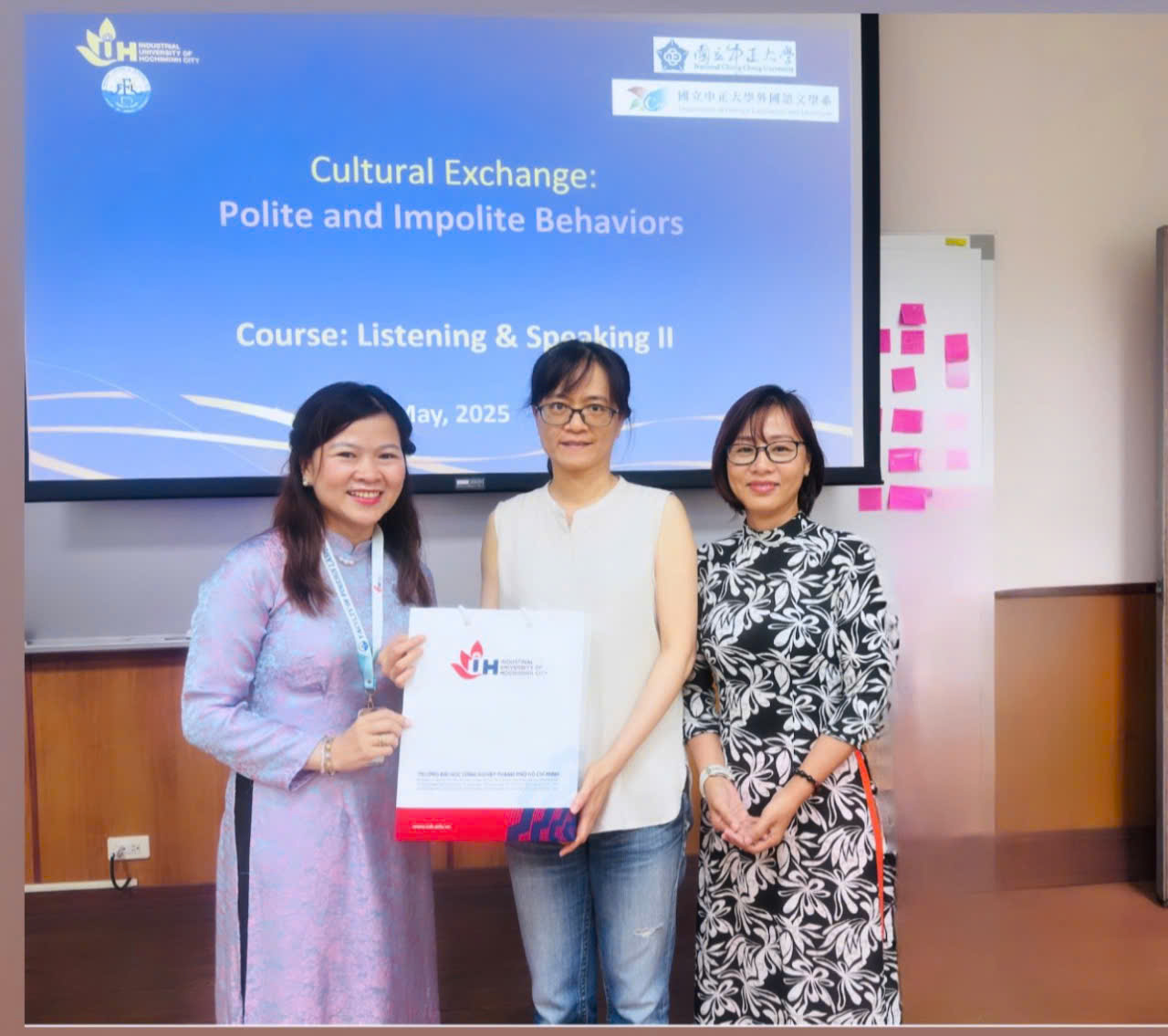 Trong khuôn khổ hoạt động hợp tác quốc tế giữa Đại học Công nghiệp TP. Hồ Chí Minh (IUH) và Đại học Quốc lập Trung Chính (National Chung Cheng University - CCU), Đài Loan, hai giảng viên Khoa Ngoại ngữ, cô Nguyễn Thị Diễm Thi và cô Lê Thị Thiên Phước, đã tham gia chương trình trao đổi giảng viên kéo dài gần hai tuần tại Khoa Ngôn ngữ và Văn học, Trường Nhân văn, Đại học CCU.