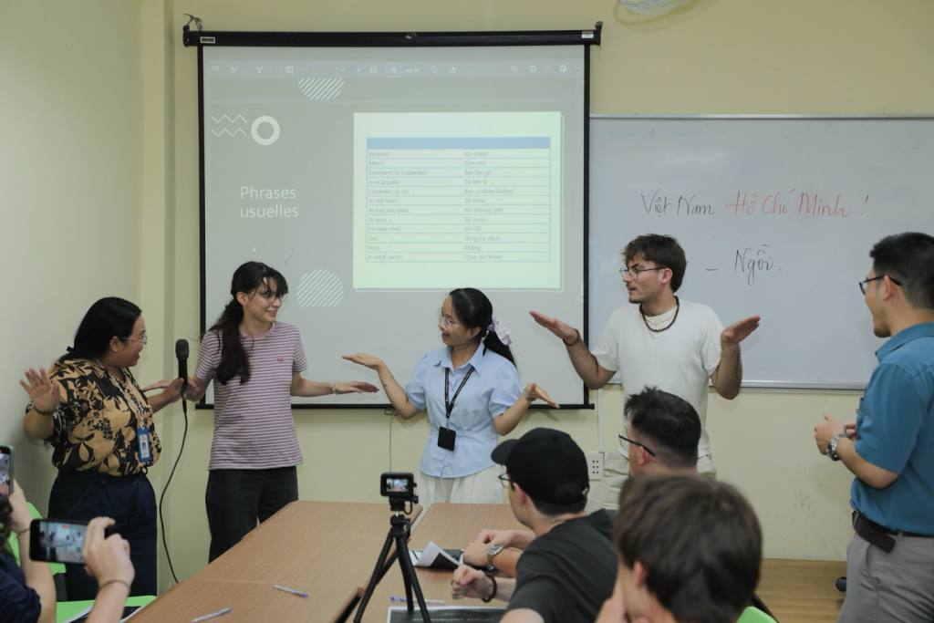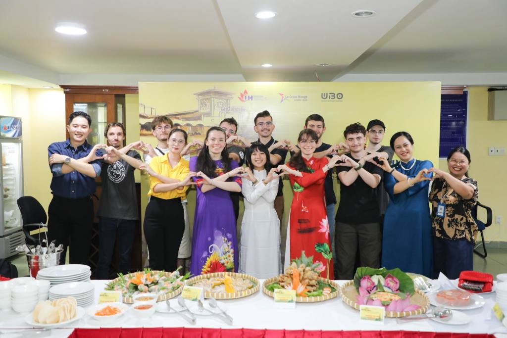 Bên cạnh học thuật, yếu tố văn hóa được lồng ghép khéo léo và sinh động. Sinh viên Pháp đã trải nghiệm khóa học tiếng Việt cơ bản, tìm hiểu đời sống văn hóa truyền thống thông qua các món ăn đặc trưng như bánh dày, xôi xéo, cà phê Việt; tham gia cuộc thi thiết kế thời trang 3D trên giấy cùng sinh viên IUH; hát các bài dân ca, chơi đá cầu và các trò chơi dân gian. Đặc biệt, bữa tiệc giao lưu văn hóa ẩm thực vào trưa 18/6 đã để lại ấn tượng sâu sắc với sự kết hợp giữa các món ăn truyền thống Việt Nam và hương vị ẩm thực Pháp, trong đó có cả rượu vang được mang sang từ UBO.