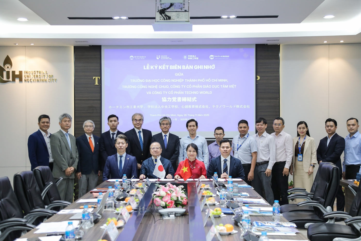 Sáng ngày 27.11, Trường Đại học Công nghiệp TP.HCM đã ký kết hợp tác với Trường Công nghệ Chuo; Công ty Cổ phần Techno World và Công ty Cổ phần Giáo dục Tâm Việt trong lĩnh vực đào tạo và hỗ trợ chuyển đổi việc làm tại Nhật Bản cho sinh viên IUH.