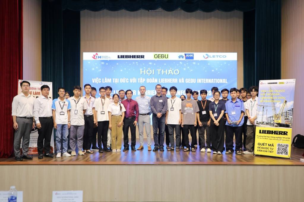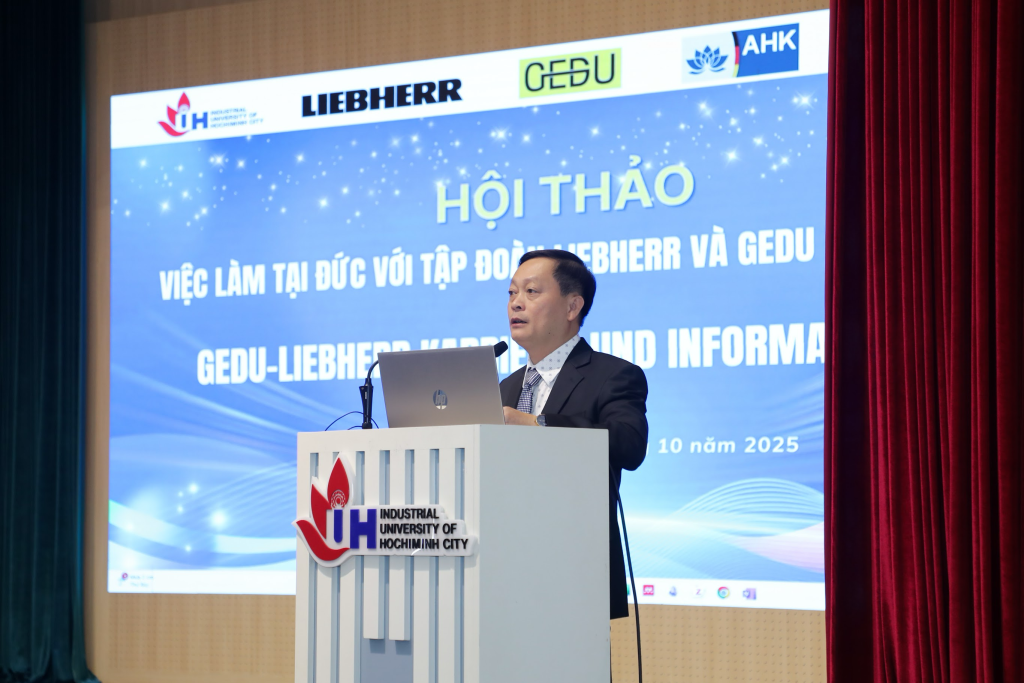 Chiều ngày 9/10/2025, Đại học Công nghiệp TP. Hồ Chí Minh tổ chức Hội thảo “Cơ hội làm việc và phát triển sự nghiệp toàn cầu tại CHLB Đức”, với sự đồng hành của Tập đoàn Liebherr và GEDU International GmbH, mang đến cho sinh viên thông tin thiết thực về chương trình học tập, rèn luyện và phát triển nghề nghiệp tại một trong những trung tâm công nghiệp hàng đầu thế giới.