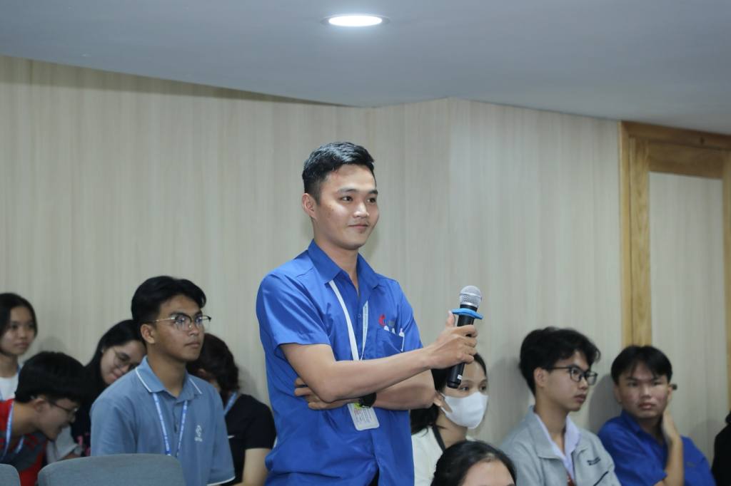 Tại buổi giao lưu, sinh viên IUH đặt nhiều câu hỏi xoay quanh quy trình tuyển dụng, yêu cầu đầu vào và mức độ công nhận bằng cấp. Các đại diện từ Tập đoàn Liebherr và GEDU International GmbH đã trực tiếp giải đáp, giúp sinh viên hiểu rõ hơn về lộ trình chinh phục giấc mơ nghề nghiệp tại châu Âu.