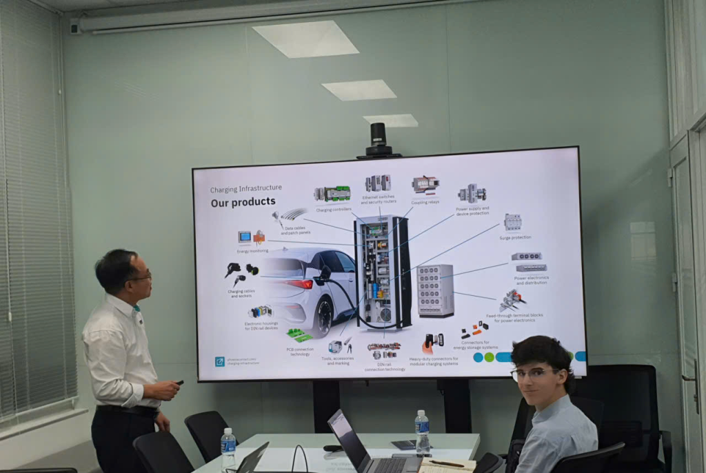 Bên cạnh sự hướng dẫn của ThS. Nguyễn Hoài Phong, Pierrick còn được trực tiếp trải nghiệm hệ thống BMS với ThS. Trịnh Hữu Trường - giảng viên Khoa Công nghệ Điện. Anh cũng có cơ hội tìm hiểu văn hóa doanh nghiệp, nghiên cứu trạm sạc xe điện và tiếp cận thiết bị điện tiên tiến tại Phoenix Contact Southeast Asia. Đây đều là những trải nghiệm quý giá, giúp Pierrick vừa tiếp cận công nghệ hiện đại vừa hiểu rõ sự gắn kết giữa đào tạo và sản xuất công nghiệp.