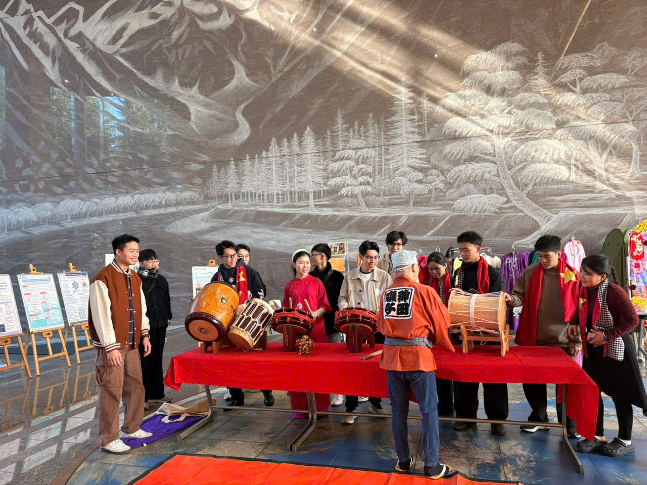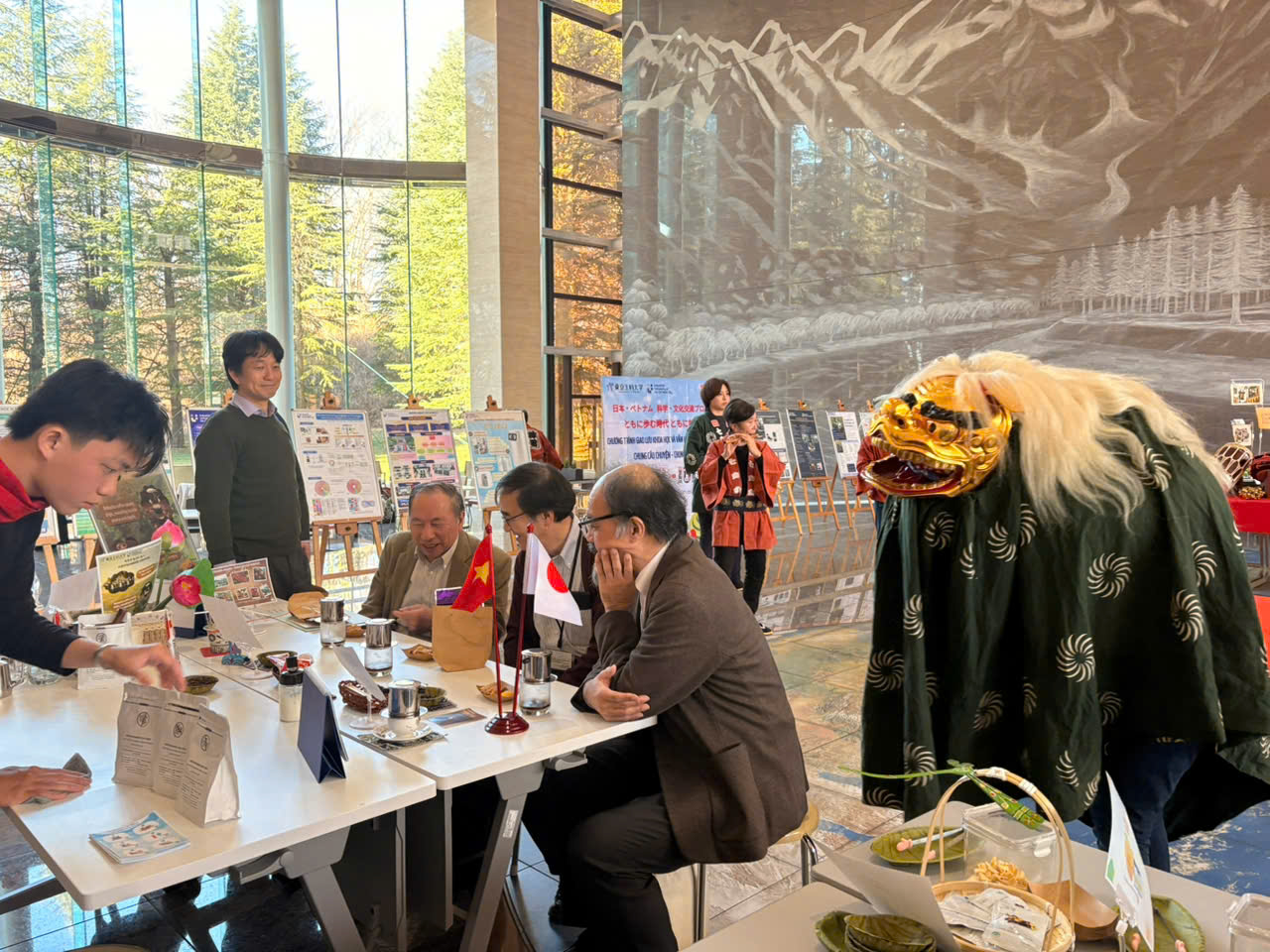 Bên cạnh với hoạt động chuyên môn, không gian giao lưu văn hóa trở thành điểm nhấn nổi bật, mang đến bầu không khí sinh động và giàu bản sắc. Sinh viên IUH và TUT cùng tham gia giới thiệu ẩm thực, trang phục truyền thống và các sản phẩm sáng tạo. Đặc biệt, màn múa lân Nhật Bản và phần giới thiệu đấu kiếm Nhật Bản đã để lại nhiều ấn tượng sâu sắc, thể hiện sự giao thoa hài hòa giữa hai nền văn hóa.