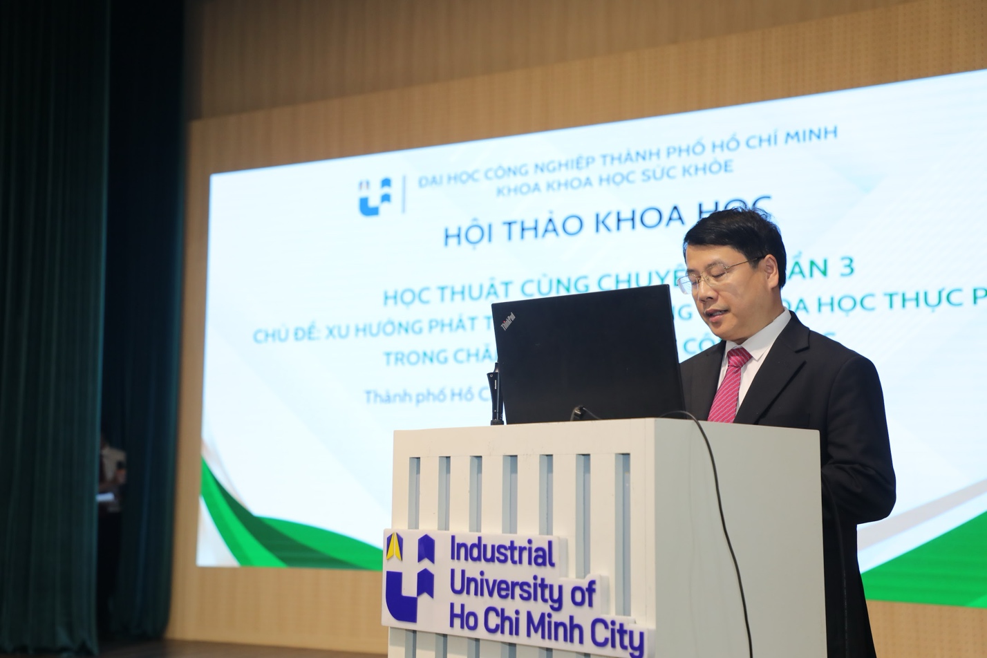 Phát biểu khai mạc, GS.TS Trần Đình Thắng - Trưởng khoa Khoa học Sức khỏe, IUH nhấn mạnh: dinh dưỡng và khoa học thực phẩm đang trở thành nền tảng quan trọng của hệ thống y tế hiện đại. Theo ông, định hướng đào tạo - nghiên cứu của khoa phải gắn với thực tiễn, đáp ứng nhu cầu xã hội và xu thế hội nhập.