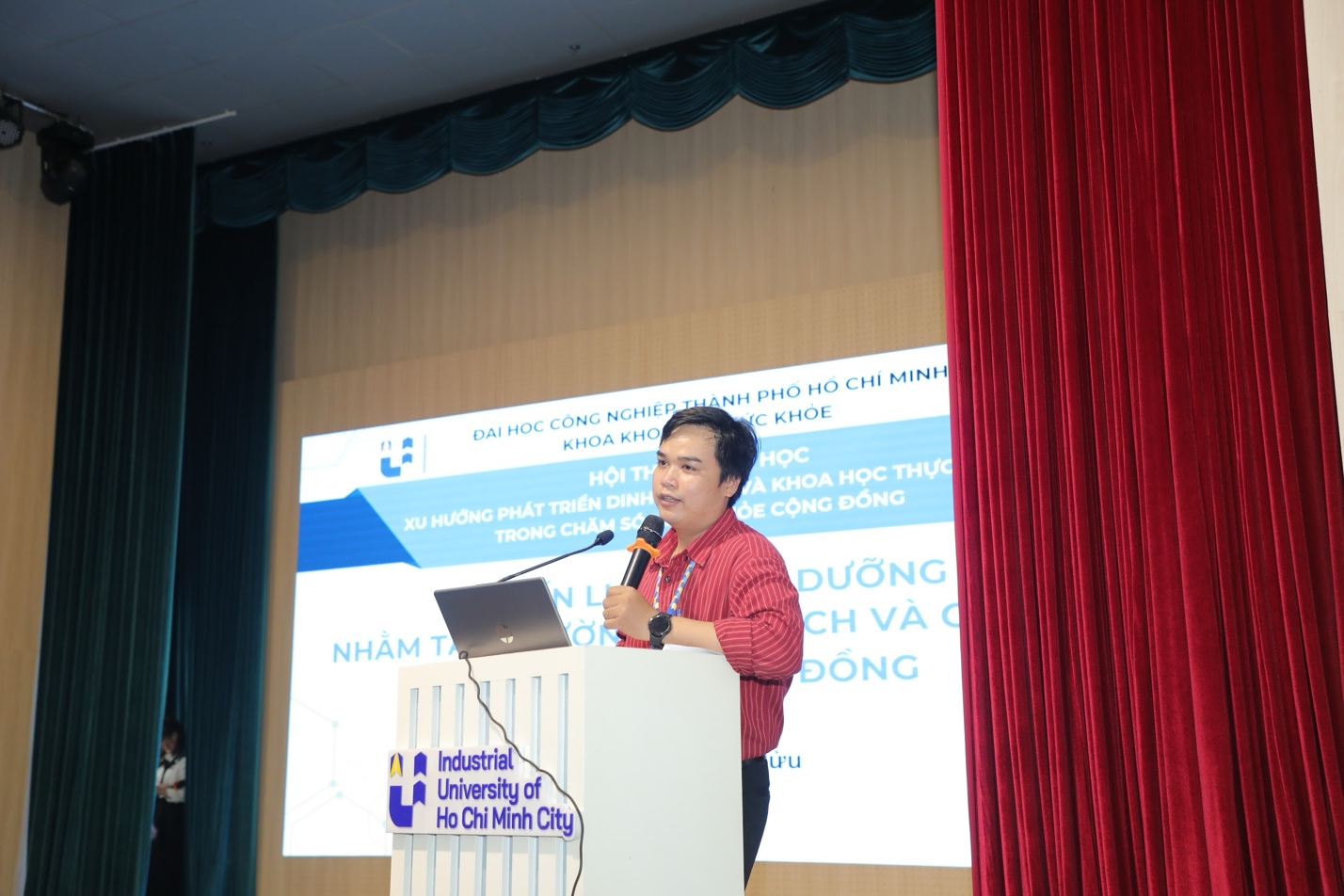 Mang đến góc nhìn thực tiễn, TS. Trần Ngọc Bửu - giảng viên khoa Khoa học Sức khỏe, IUH tập trung vào chiến lược dinh dưỡng nhằm tăng cường miễn dịch và cải thiện sức khỏe cộng đồng. Báo cáo nhấn mạnh vai trò của dinh dưỡng dự phòng, đặc biệt trong bối cảnh các bệnh không lây nhiễm ngày càng gia tăng.