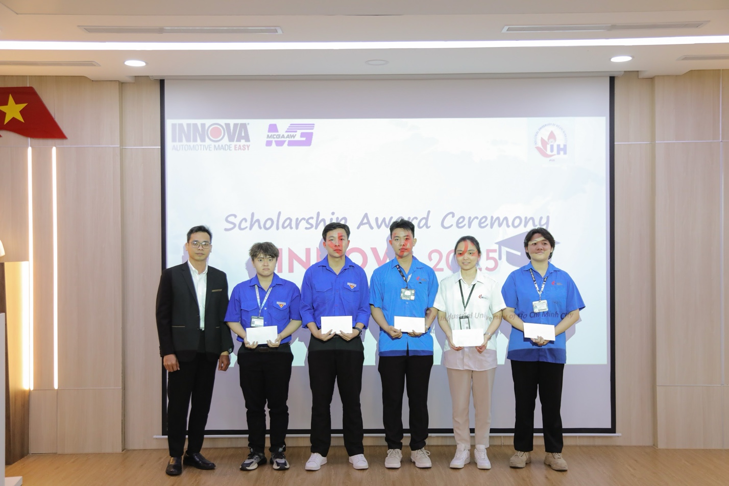 Tại chương trình, Công ty Innova Electronics đã trao tặng 5 suất học bổng cho 5 sinh viên có thành tích tốt trong tập, mỗi suất học bổng là 3 triệu đồng.