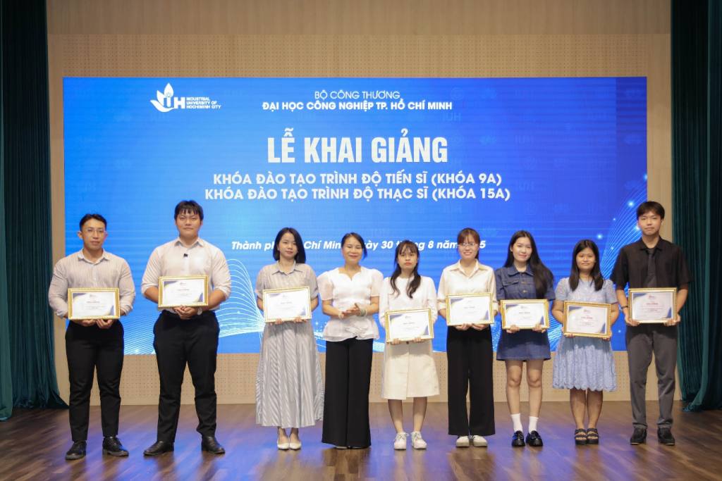Tại buổi lễ, Đại học Công nghiệp TP. Hồ Chí Minh đã trao bằng cho 04 tân Tiến sĩ và 35 tân Thạc sĩ, đồng thời khai giảng khóa đào tạo mới với 41 nghiên cứu sinh và 137 học viên cao học, cho thấy sự phát triển mạnh mẽ của công tác đào tạo sau đại học tại Nhà trường. Đặc biệt, trong đợt này có 32 học viên từng là sinh viên IUH quay lại tiếp tục học tập và được vinh dự nhận 32 suất học bổng toàn phần học kỳ I với tổng trị giá gần 700 triệu đồng; toàn bộ học bổng được chuyển thẳng vào tài khoản học phí, trở thành nguồn khích lệ thiết thực, lan tỏa tinh thần học tập và gắn bó lâu dài với Nhà trường, đồng thời khẳng định uy tín và sức hút của các chương trình đào tạo sau đại học đa dạng từ kinh tế, quản trị đến kỹ thuật và công nghệ, đáp ứng nhu cầu học tập và nghiên cứu của người học.