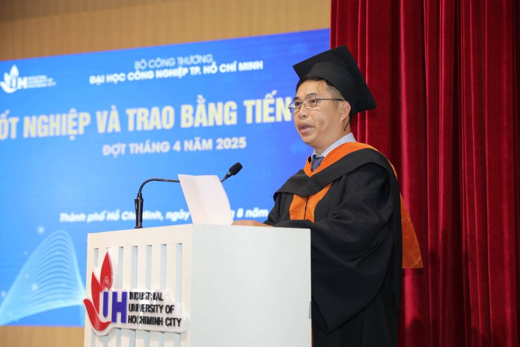 Đại diện học viên, tân Thạc sĩ Nguyễn Xuân Khánh xúc động chia sẻ: “Chúng em tự hào khi được học tập và trưởng thành dưới mái trường Đại học Công nghiệp TP. Hồ Chí Minh – một ngôi trường giàu truyền thống, đang khẳng định vị thế trên bản đồ giáo dục và nghiên cứu quốc tế. Với đội ngũ giảng viên tâm huyết, cùng tầm nhìn chiến lược của Ban Giám hiệu, chúng em tin chắc rằng IUH sẽ còn tỏa sáng, chắp cánh cho nhiều thế hệ học viên, nhà nghiên cứu và doanh nhân trong tương lai”.