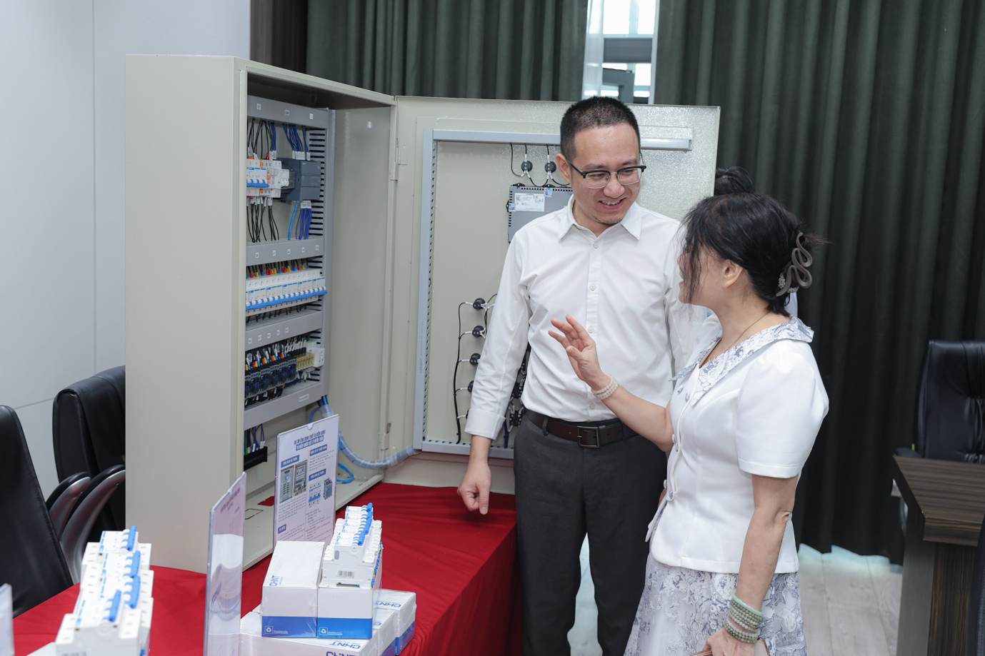 Ông Andy Wu - Giám đốc Vận hành CHINT Việt Nam giới thiệu về các thiết bịTrên cơ sở đánh giá tiềm năng và nhu cầu đào tạo, IUH và CHINT Vietnam Holding thống nhất thiết lập quan hệ hợp tác trong lĩnh vực hỗ trợ trang thiết bị đào tạo, góp phần tạo môi trường thực hành trực quan, sinh động, giúp sinh viên Khoa Công nghệ Điện được tiếp cận và thực hành trên các mô hình hiện đại, phù hợp với yêu cầu thực tiễn doanh nghiệp.