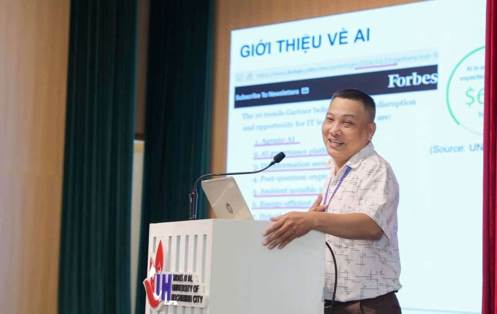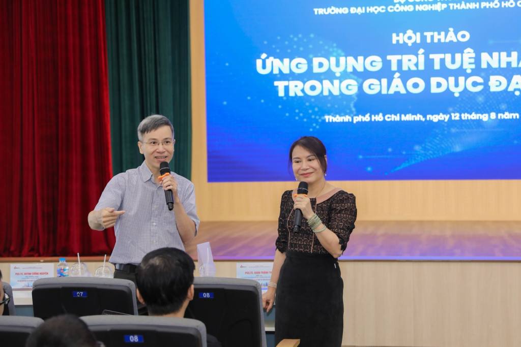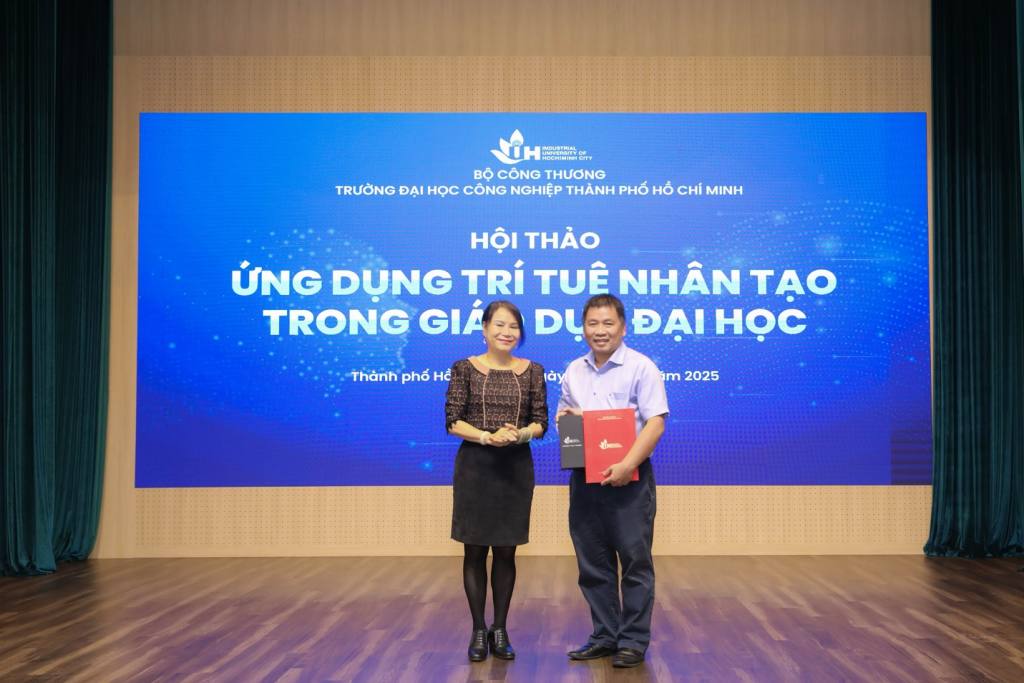 Sáng ngày 12/8/2025, Đại học Công nghiệp TP.HCM (IUH) tổ chức Hội thảo “Ứng dụng Trí tuệ nhân tạo (AI) trong giáo dục đại học năm 2025” với sự tham dự của PGS.TS Đàm Sao Mai – Phó Hiệu trưởng Nhà trường; các báo cáo viên: PGS.TS Quản Thành Thơ – Trưởng khoa Khoa học và Kỹ thuật máy tính, Trường Đại học Bách khoa TP.HCM (ĐHQG-TP.HCM); PGS.TS Huỳnh Tường Nguyên – Phó Trưởng khoa Công nghệ Thông tin IUH; TS Nguyễn Đình Quyền – chuyên gia lĩnh vực AI, công ty Intel Việt Nam.