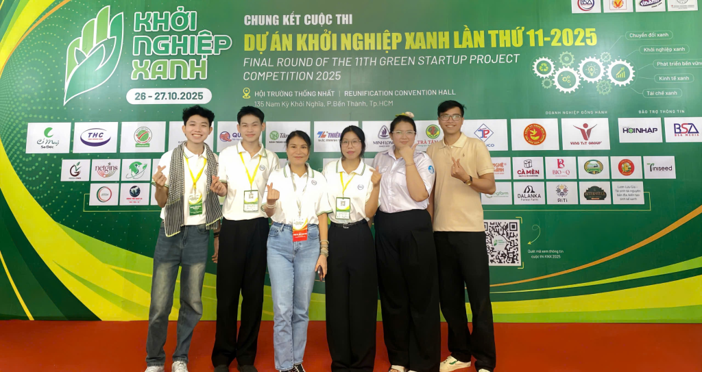 Ngày 26/10/2025, ba sinh viên Đặng Hoàng Khang, Trần Quỳnh Huyền Trân và Lâm Đoàn Minh Phúc đã đại diện IUH bước vào Vòng Chung kết Cuộc thi Dự án Khởi nghiệp Xanh lần thứ 11 với dự án Netgins - Gừng sưởi ấm, sinh kế xanh. Trải qua nhiều tháng miệt mài nghiên cứu và thử nghiệm, dưới sự hướng dẫn tận tâm của các thầy cô IUH, nhóm đã xuất sắc giành Giải Nhì Bảng A (Dành cho các dự án mới, có sản phẩm mẫu hoặc đã ra thị trường dưới 1 năm) và Giải Nhất Cuộc thi Sáng kiến Chuyển đổi xanh - Kinh tế xanh mở ra hành trình khởi nghiệp đầy hứa hẹn phía trước.
