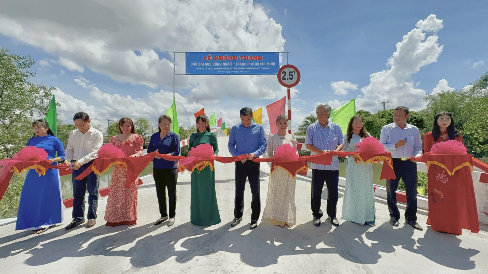 Việc khánh thành công trình đúng vào ngày sinh nhật Bác càng trở nên ý nghĩa hơn, như một hành động thiết thực thể hiện tinh thần sẻ chia, phụng sự cộng đồng, và noi theo tấm gương đạo đức, lối sống giản dị vì dân vì nước của Người. Cầu Đại học Công nghiệp TP. Hồ Chí Minh là công trình giao thông nông thôn có chiều dài 54m, rộng 3,3m, được thiết kế nâng cấp kết hợp mở rộng sân cầu, giúp việc đi lại và vận chuyển nông sản của người dân được thuận lợi, đặc biệt trong mùa thu hoạch với sản lượng khoảng 600 – 700 tấn trái cây mỗi năm. Dù quá trình thi công gặp không ít khó khăn do thời tiết mưa nắng thất thường, nhưng với tinh thần trách nhiệm cao và sự chung sức của đội thi công cùng người dân trong ấp, công trình đã được hoàn thành đúng tiến độ, khởi công ngày 16/2 và hoàn thành vào 24/4/2025.