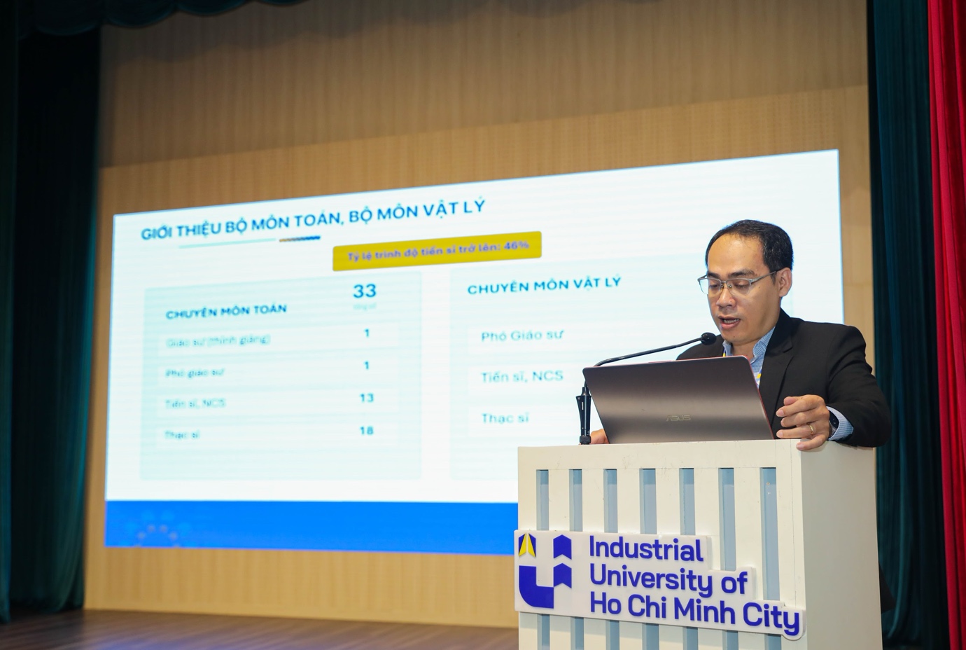 Mở đầu, báo cáo “Cơ cấu các môn khoa học cơ bản và những vấn đề đặt ra” của TS Nguyễn Đức Phương (Trường đại học Công nghiệp TP. HCM) cho thấy: “Khi đối sánh với các cơ sở đào tạo kỹ thuật lớn trong nước và quốc tế, cấu trúc các học phần Toán - Lý tại IUH vẫn còn những điểm cần tiếp tục hoàn thiện nhằm phát huy tốt hơn vai trò nền tảng trong đào tạo kỹ thuật”.