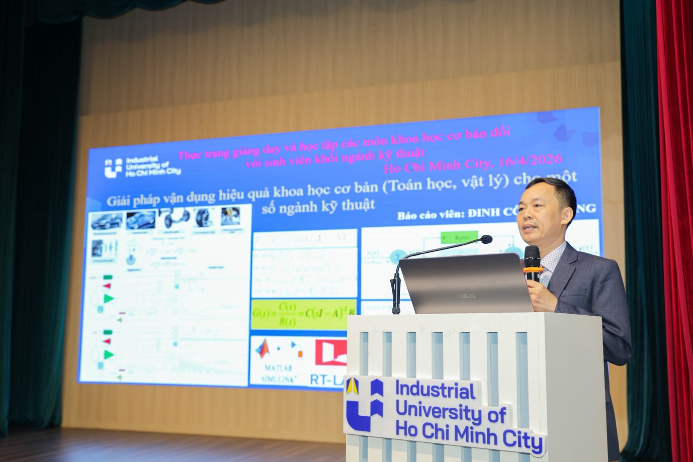 Sáng 16-4, Khoa Khoa học cơ bản, Trường đại học Công nghiệp TP. HCM (IUH) tổ chức hội thảo “Thực trạng giảng dạy và học tập các môn khoa học cơ bản đối với sinh viên khối ngành kỹ thuật”, thu hút sự tham gia của đông đảo giảng viên, nhà khoa học và chuyên gia.
