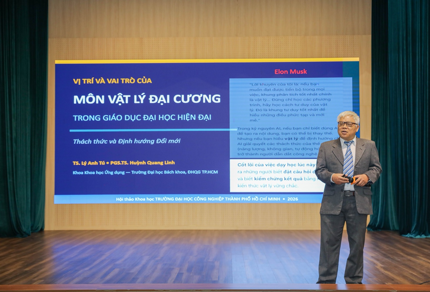 Bổ sung góc nhìn từ thực tiễn đào tạo, TS Lý Anh Tú (Trường đại học Bách khoa TP. HCM) với chuyên đề “Vị trí và vai trò của môn Vật lý đại cương trong giáo dục đại học hiện đại: thách thức và định hướng đổi mới” đã phân tích những yêu cầu đặt ra đối với việc đổi mới nội dung và phương pháp giảng dạy môn học này trong bối cảnh hiện nay.