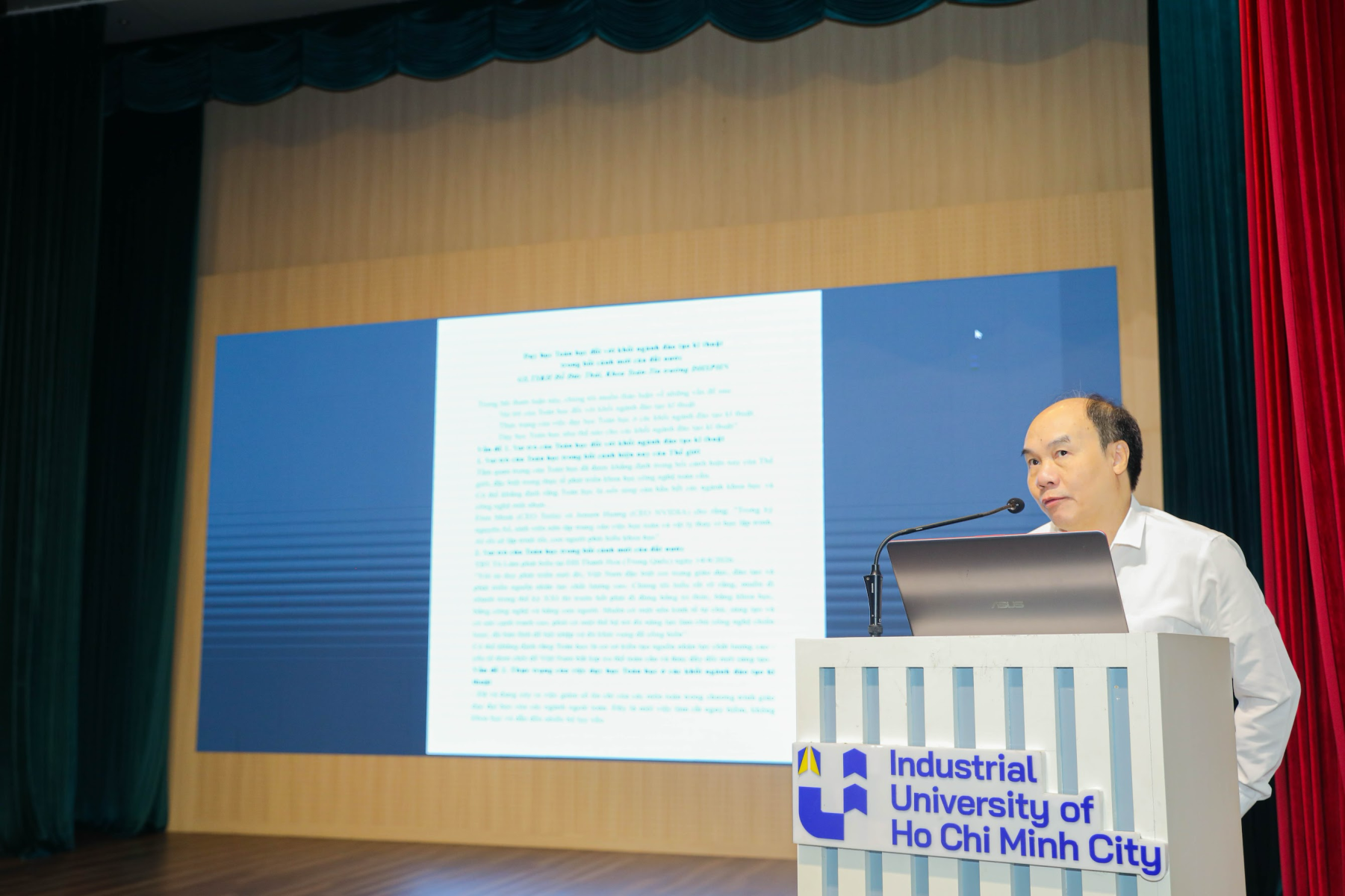 Từ góc nhìn giảng dạy, PGS.TS Đinh Công Hướng (Trường đại học Công nghiệp TP. HCM) với chuyên đề “Giải pháp vận dụng hiệu quả khoa học cơ bản cho một số ngành kỹ thuật” nhấn mạnh: “Toán học và Vật lý hiện diện trong hầu hết các lĩnh vực kỹ thuật. Nếu người học chưa nắm vững, việc theo đuổi ngành sẽ gặp nhiều trở ngại. Đây không chỉ là câu chuyện kiến thức, mà còn là vấn đề định hướng ngay từ đầu cho sinh viên”.