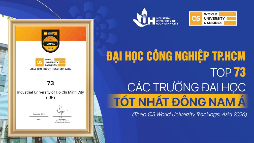Đại học Công nghiệp TP. Hồ Chí Minh (IUH) vinh dự nhận Giải thưởng quốc tế “Global Engagement - Performance Improvement” (Hội nhập toàn cầu - Cải tiến hiệu quả) do QS Quacquarelli Symonds trao tặng. Cũng trong dịp này, QS World University Rankings: Asia 2026 công bố IUH tiếp tục được thăng hạng với vị trí 355 trong bảng xếp hạng giáo dục đại học khu vực Châu Á và 73 tại khu vực Đông Nam Á.