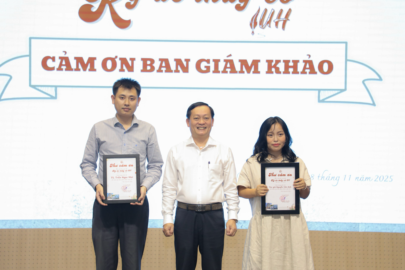 Nhà văn Nguyễn Vân Anh, Ban Giám khảo cuộc thi trao giải Ba cho thí sinh Trương Thị Yến Nhi viết về thầy Nguyễn Xuân Tòng - giảng viên Viện KHCN và QLMT