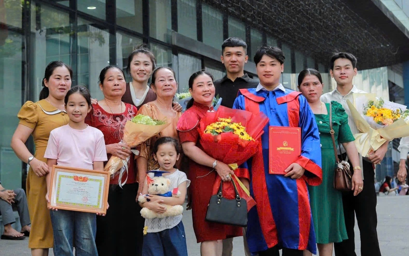 Phía sau thành công của mỗi sinh viên luôn là những câu chuyện thầm lặng của gia đình. Mẹ của Khánh Duy xúc động kể rằng cả nhà từ Tiền Giang lên từ mờ sáng, ba thế hệ, bà nội bà ngoại cô dì cùng đi để chứng kiến khoảnh khắc tốt nghiệp: “Tay chân mẹ có thể lem luốc, nhưng các con phải có chữ để đỡ vất vả. Hôm nay, mọi hy sinh đều xứng đáng”. Những lời chia sẻ mộc mạc nhưng chân thành đủ khiến nhiều người nghẹn lại.