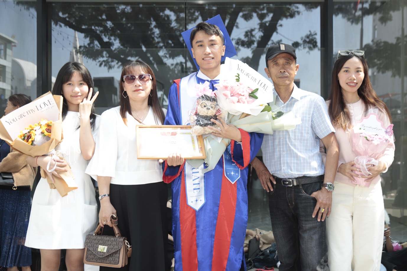 Gia đình chúc mừng Đỗ Duy Quý - tân cử nhân xuất sắc chuyên ngành Marketing - tại buổi lễ tốt nghiệp.