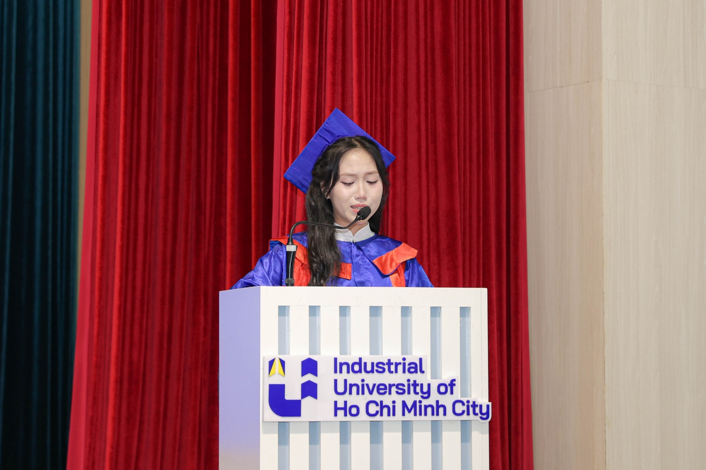 Thanh nghẹn ngào nói: “IUH đối với em như một ngôi nhà thứ hai, nơi chúng em trưởng thành cả về tri thức lẫn nhân cách. Suốt hành trình ấy là sự đồng hành bền bỉ của thầy cô, những người tận tụy dẫn dắt, kiên trì truyền đạt kiến thức và nâng đỡ từng bước đi. Và trên hết là sự hy sinh thầm lặng của cha mẹ - những người luôn đứng phía sau, âm thầm chịu đựng vất vả, đặt trọn niềm tin vào con. Ngày tốt nghiệp không chỉ là cột mốc đánh dấu thành quả hôm nay, mà còn là lời tri ân sâu sắc gửi đến gia đình và thầy cô - những người đã tạo nền tảng vững chắc để chúng em tự tin bước vào tương lai. Những người cha, người mẹ với sự hy sinh không bao giờ kể. Họ chính là những ‘người hùng thầm lặng’ của cuộc đời chúng con.”