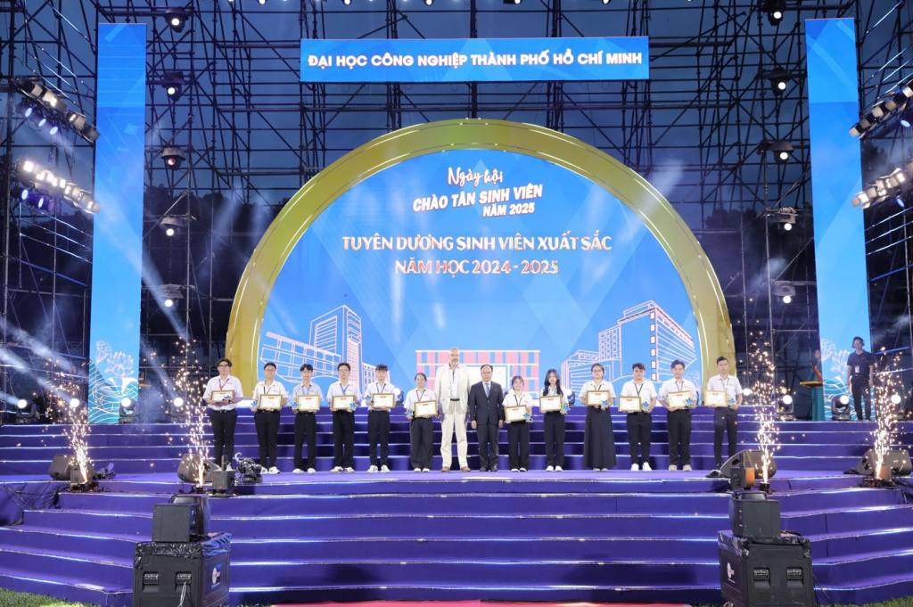 Tại lễ vinh danh, IUH khen thưởng 9 thủ khoa ngành, trong đó bạn Lê Thị Huỳnh Như (ngành Luật Kinh tế) xuất sắc trở thành thủ khoa toàn trường với 27,97 điểm khối C00. Mỗi thủ khoa ngành nhận học bổng trị giá 10 triệu đồng, riêng thủ khoa toàn trường được trao thêm phần thưởng đặc biệt 50 triệu đồng do Ngân hàng TMCP Nam Á tài trợ. Bên cạnh đó, Nhà trường cũng trao 25 suất học bổng cho sinh viên tiêu biểu năm học 2024 – 2025, mỗi suất trị giá 2 triệu đồng.