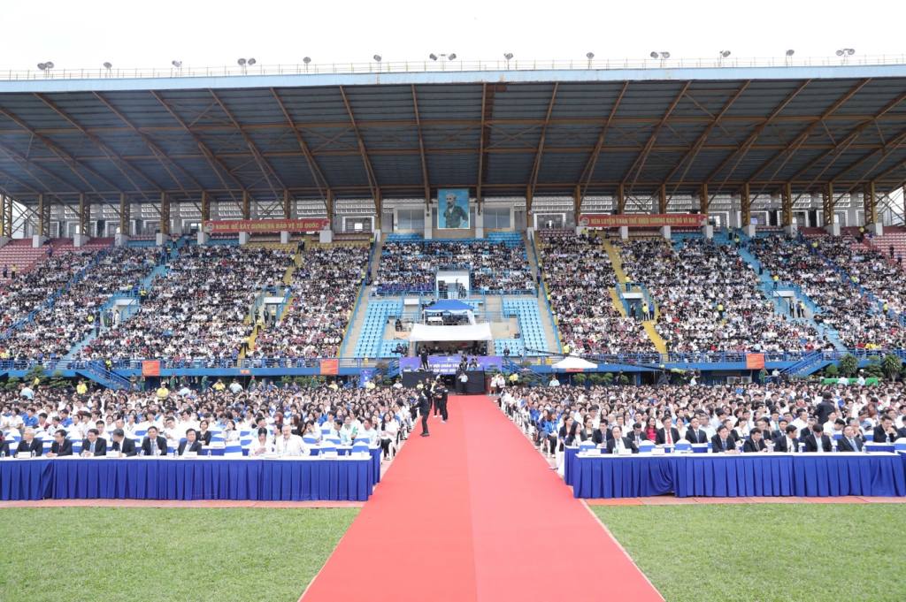 Chiều 30/9, chương trình “Ngày hội Chào Tân sinh viên năm học 2025 - 2026” của Đại học Công nghiệp TP. HCM (IUH) bước vào chương trình trọng điểm - khoảnh khắc được mong chờ nhất sau chuỗi hoạt động sôi nổi buổi sáng. Toàn bộ khán đài Sân vận động Quân khu 7 đã lấp kín chỗ ngồi, tạo nên bầu không khí hân hoan, và tự hào của ngày hội nhập học lớn nhất năm.