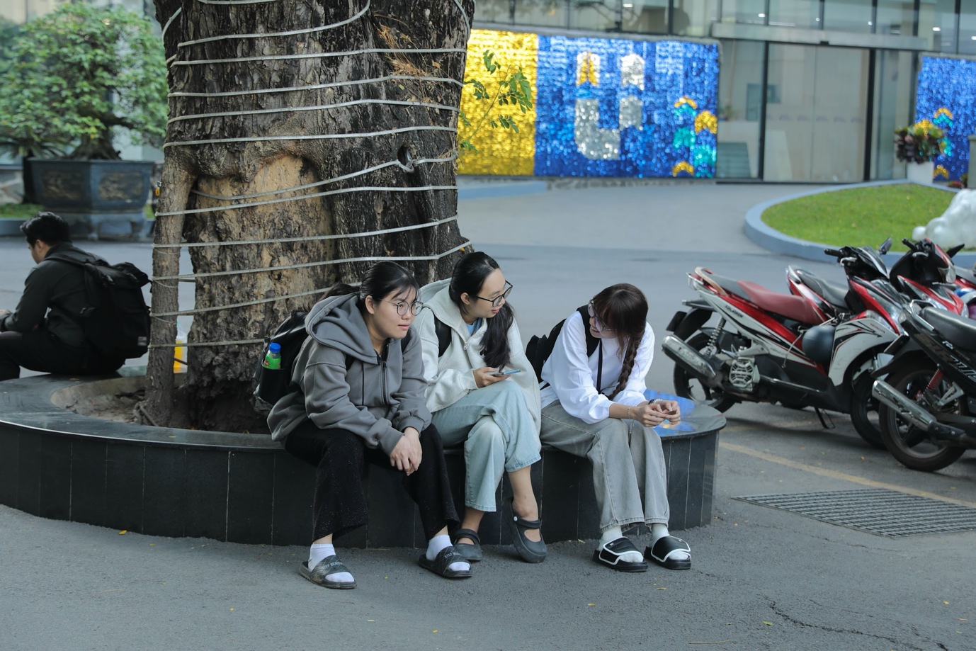 Tại sân trường hay trong lớp học, nhiều sinh viên rôm rả kể cho nhau nghe những câu chuyện ngày Tết và phấn khởi khi trở lại phòng thí nghiệm, giảng đường