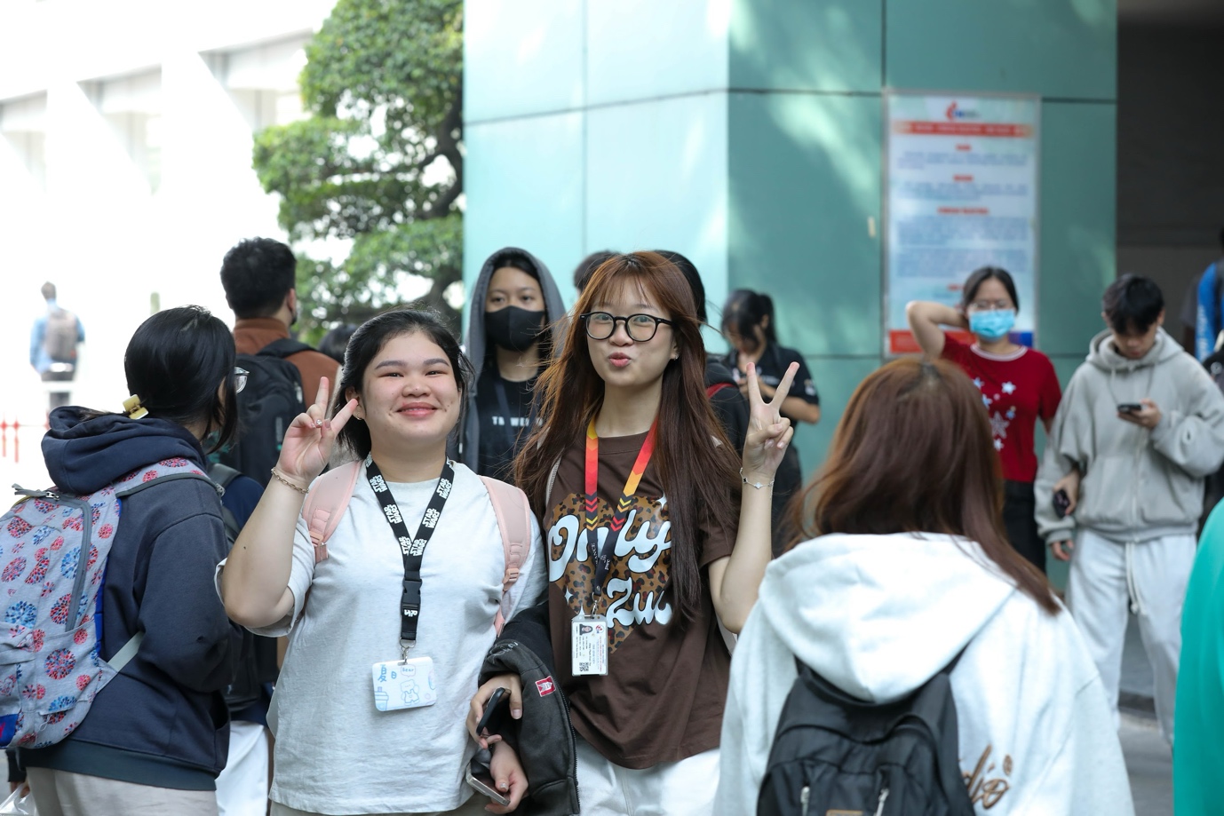 Niềm vui hiện rõ trên gương mặt nhiều sinh viên khi gặp lại bạn bè sau kỳ nghỉ Tết dài ngày
