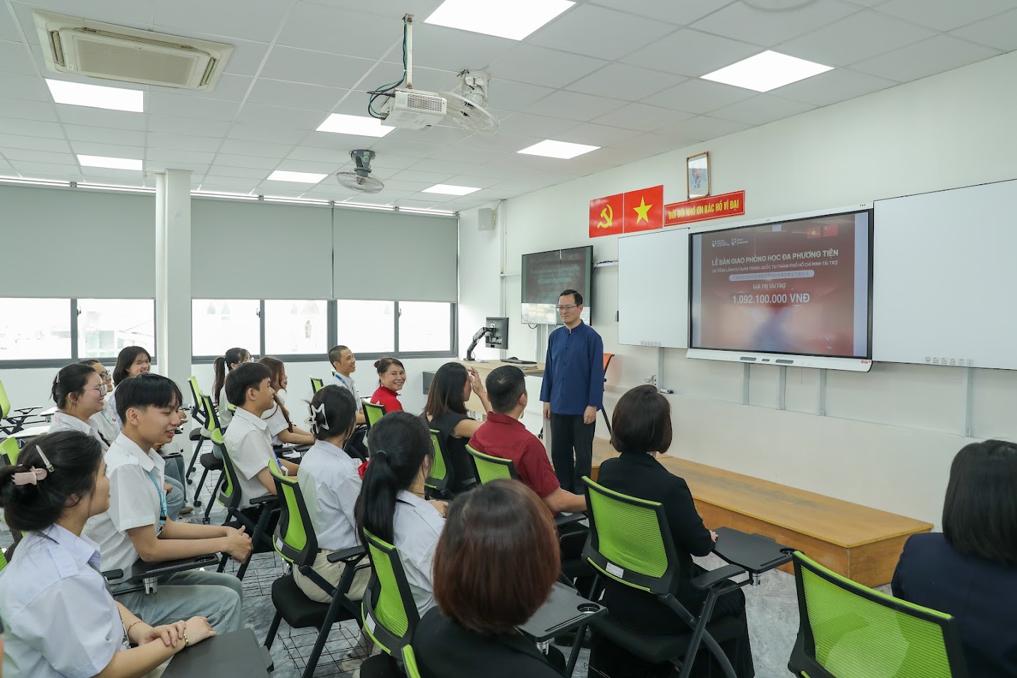 Gói trang thiết bị bao gồm phương tiện giảng dạy tiên tiến và bàn ghế chuyên dụng, đồng bộ cho hoạt động dạy - học ngoại ngữ, với tổng trị giá 1.092.100.000 đồng, nhằm trang bị cho 2 phòng học Ngôn ngữ Trung Quốc đạt chuẩn, phục vụ sinh viên chuyên ngành của Nhà trường.