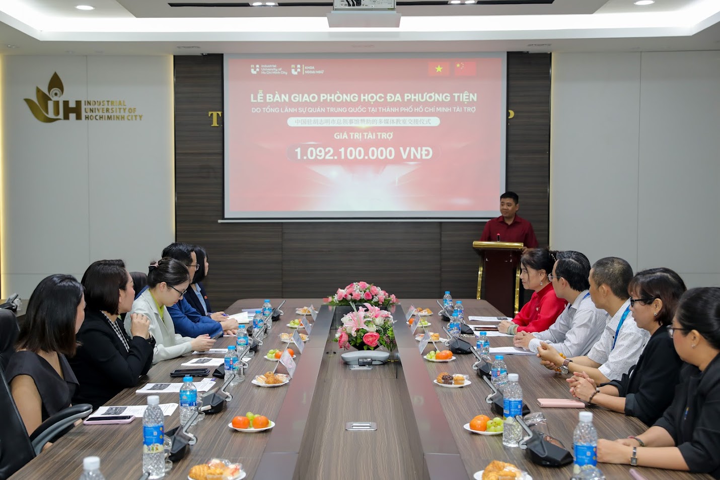 Đại diện IUH, PGS. TS. Đàm Sao Mai nhấn mạnh: “Sự hỗ trợ quý báu này góp phần thiết thực vào việc nâng cao chất lượng dạy và học tiếng Trung Quốc, tạo môi trường học tập hiện đại, đáp ứng nhu cầu đào tạo nguồn nhân lực chất lượng cao trong bối cảnh hội nhập quốc tế ngày càng sâu rộng. Trường đại học Công nghiệp TP. Hồ Chí Minh cam kết sử dụng hiệu quả, đúng mục đích các phòng học được tài trợ và mong muốn tiếp tục nhận được sự đồng hành lâu dài từ Lãnh sự quán trong thời gian tới”.
