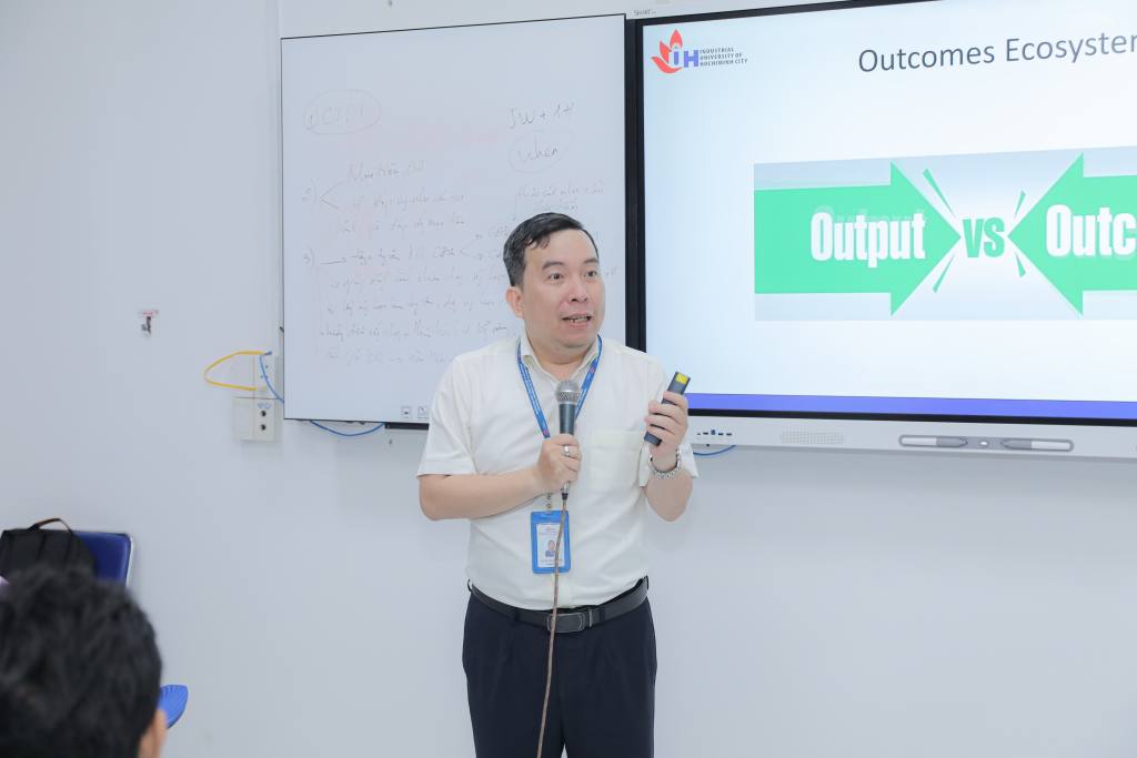 Trong buổi tập huấn, các giảng viên được trang bị những kiến thức quan trọng như vận dụng thang đo các mức độ nhận thức của Bloom để xây dựng chuẩn đầu ra môn học phù hợp với chuẩn đầu ra chương trình; đánh giá chuẩn đầu ra môn học dựa trên thang đo nhận thức của Bloom; ứng dụng khái niệm "constructive alignment" trong thiết kế và triển khai giảng dạy; lựa chọn phương pháp kiểm tra đánh giá phù hợp với chuẩn đầu ra môn học; giải thích các khái niệm về độ tin cậy, độ giá trị và độ khó của đề thi; thiết kế đề thi phù hợp với chuẩn đầu ra; xây dựng báo cáo môn học theo mẫu của trường và sử dụng các công cụ hỗ trợ để làm báo cáo.